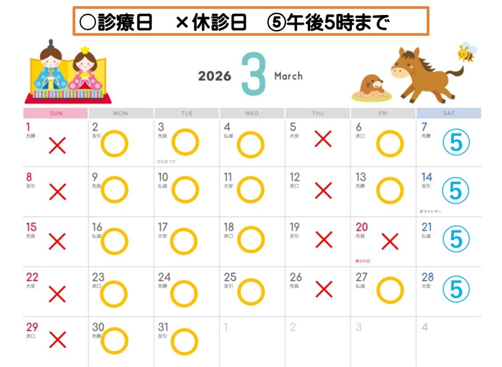 土曜午後は17時までの診療です。